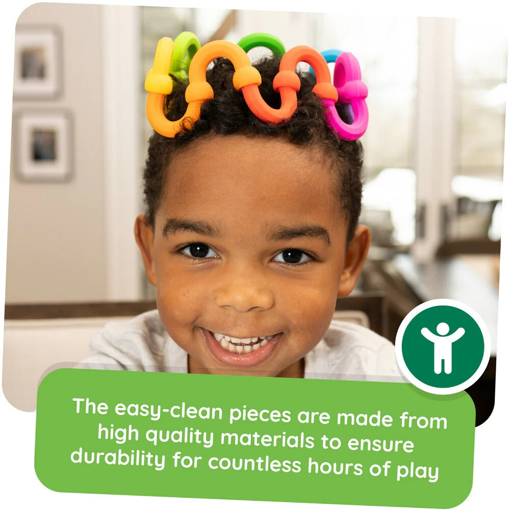 Push the silicone links together to build rainbow chains, swirling sculptures or silly characters—then pull them apart for a satisfying “POP!” sensation. Open-ended construction, sensory fun and endless creativity all in one set.